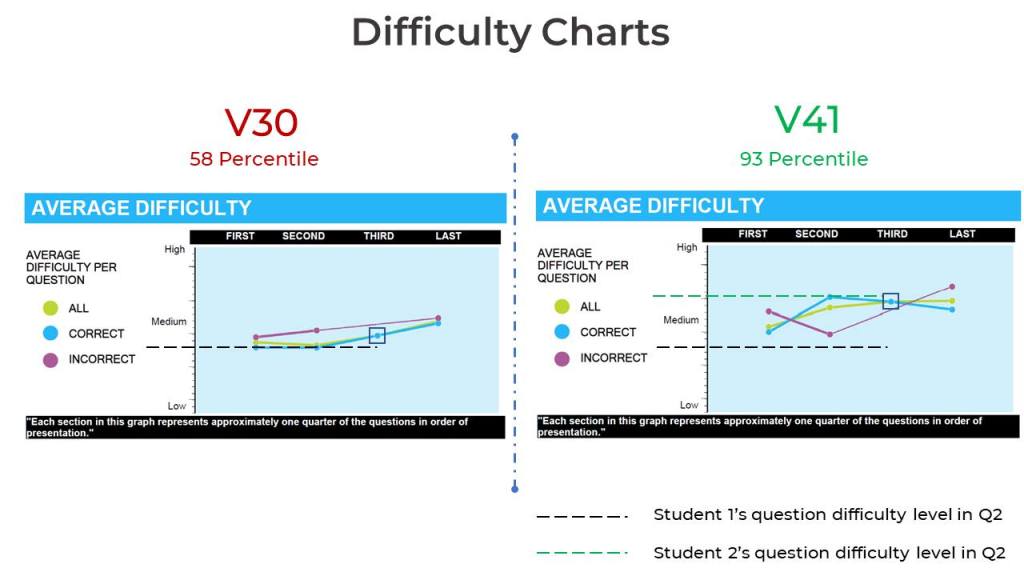 So, do you understand how, despite having similar level of accuracy, the two students got scored differently? GMAT is clearly not being unfair here. It is just that the students had varying levels of skills.